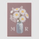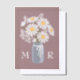Die Einfachheit eines Bouquets weißer Gänsebläschen in einem Maurerglas schafft ein elegantes und dennoch minimalistisches Hochzeitsdesign. Anpassbare Initialen.
