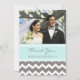 Kundenspezifisches Foto der Hochzeit danken Ihnen für die Geschenkkarten im eleganten hellen Graus und weißen modernem und Zickzack Zickzackmuster des Spaßes des Türkisblaus, des Holzkohlen. Völlig kundengerecht, doppelseitig, verfügbar in vielen zusammenpassenden Produkten für Ihren ganzen Hochzeits- oder Partybedarf. Treten Sie mit uns in Verbindung, um um eine Farbänderung zu bitten oder kundenspezifisch anzufertigen.