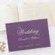 Ein einfaches Hochzeitsbuch mit moderner Farbe, staubiger lila und eleganter weißer Kalligraphie.