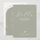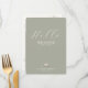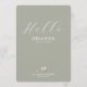 Welcome your guests in a thoughtful and elegant way with this dual-purpose place card and menu from the Two Are Better Than One wedding collection. The front side features a soft sage green background with a warm greeting that reads “Hello” followed by the guest’s name, making each attendee feel personally welcomed to your celebration.