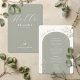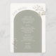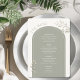The reverse side features the wedding menu, elegantly framed within a sage green arch and accented with delicate greenery details for a soft botanical look. This modern yet timeless design combines function and style, helping guests find their seats while also presenting the evening’s menu in a refined and cohesive format.