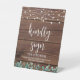 Wir laden Sie ein, Ihr Hochzeitsgast-Gästebuch mit diesem modernen, aber rustikalen Eukalyptusgrün und dem Streichellichter-Gästebuch zu unterschreiben. Dieses grüne Gästebuchzeichen mit seinen eleganten botanischen Blätter, den Saitenlichtern aus rustikalem Stallholz und den personalisierten Braut- und Bräutigamen. Besuchen Sie unsere rustikale Hochzeitskollektion für Hochzeitseinladungen, speichern Sie die Daten und die perfekte Gastgeschenke Hochzeit für Ihre Gäste!COPYRIGHT © 2020 Judy Burrows, Black Dog Art - Alle Rechte vorbehalten. Wedding Guest Rustic Holz Grüne String Lights Pedestal Schild
