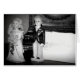 Eine altmodische Braut und ein Bräutigam wünschen den modern-tägigen Brautpaaren den Tag ihrer Träume.