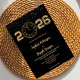 A wedding invitation with a black background and gold text is shown. The year "2026" and a clock design appear at the top, adding elegance.