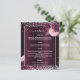 Ein elegantes, glamouröses Hochzeitsmenü. Ein tiefburgundischer Hintergrund, mit Imitaten verziert mit silberem Glitzer, Glitzern und rosa und burgudny Blume. Weißer Text. Personalisieren Sie das Menü und fügen Sie es hinzu. Sie können mehr Text hinzufügen, Fotos auf der Rückseite. 1 Blatt = 1 Menü, mit dem die Kante an Kante aufgedruckt ist.