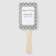 Dieser Hochzeitspaddle-Fan wird mit einem eleganten schwarz-weißen Damast-Druck und Beispielnamen und Datum gezeigt. Passen Sie dieses Element an, und ändern Sie Namen und Datum nach Bedarf.