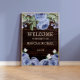 Rustic country-style dark wood wedding welcome sign with blue watercolor floral. Customized with the names of the bride and groom and their wedding date. Contact me for assistance with your customizations or to request additional matching or coordinating Zazzle products for your events..