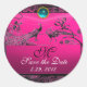 WEDEND LIEBE VÖGEL MONOGRAM Schwarz-weiß rosa Runder Aufkleber