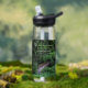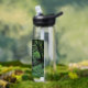 Bleibe, wo immer du hingehst mit dieser klaren, plastischen Wasserflasche, die das Foto eines Wanderweges zeigt, der über eine Holzbrücke in einen tiefen Wald führt, zusammen mit einem inspirierend Zitat des Naturisten John Muir und in grüner Schrift gedruckt, die lautet: "Und in den Wald gehe ich, um meinen Geist zu verlieren und mein Soul zu finden." Wählen Sie die Größe und Farbe der Wasserflasche aus. HINWEIS: Design nicht optimiert für Kinderflaschen.