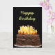 Schokolade Geburtstagskuchen mit so vielen Kerzen, dass sie für den sehr älteren Geburtstagsmensch nicht zählen können, oder nur für jemanden, den man will, sich sehr alte niedliche humorvolle Grußkarte zu fühlen.