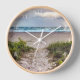 Das Originalfoto von ZoeSPEAK auf dieser Wall Clock zeigt einen Blick auf den Ozean, der von einem Sandweg durch wilde Gräser zum Strand aus zu sehen ist. Die Farbe des Himmels und der Wellen.. könnte ein stürmischer Tag sein.