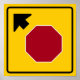 Internationale Straße und Autobahnschild beraten von einer anstehenden Haltestelle.