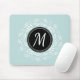 Chic Mousepad mit Minzblau-Blumenkranz und personalisiertem Monogramm.