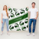 Diese niedliche Basketballdecke mit gezinkten Spiegeln zeigt die realistischen Bilder von Basketballbällen, die abwechselnd grün und weiß angeordnet sind - die Phrase "Der Basketballplatz ist mein Happy Place" in einem lässigen handgeschriebenen Schriftart in grünen Bereichen zwischen den verworrenen Basketballreihen - der Name des Athleten kann auf einem ähnlich geschwungenen, grünen Streifen personalisiert werden - der Hintergrund ist anpassbar - weiß von katz_d_zynes