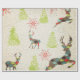 Hübsche skurrile Urlaubspapiere oder Winterverpackungspapier mit immergrünen Bäumen, Schneeflocken und gesalzenem Hirsch!