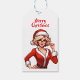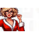Eine junge Frau mit heller Haut und kurzem blonden Haar, die einen roten Anzug mit weißem Pelzschnitt und einer Weihnachtsmannmütze trägt. Sie hat eine große runde Brille und lächelt, der Hintergrund ist schlicht weiß.
