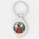 3D digitale Darstellung eines schönen weiblichen Zauberers in einem roten und schwarzen Kleid mit Flügeln auf einem fantasievollen Schlosshintergrund