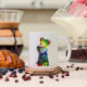 Farbenfrohes Wasserfarbendesign eines weiblichen Basketballspielers auf einer Keramiktasse gedruckt. Das dynamische Kunstwerk bringt einen sportlichen und künstlerischen Touch in Ihren Morgenkaffee oder -tee.