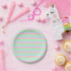 Weich blaue, rosa und grüne Streifen Pappteller