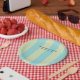Weich gestreiftes Muster - Limone Creme & Limpet Pappteller