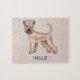 Desteis originelle Cartoon-Illustration eines niedlichen, weich überzogenen Rasse-Hundes von Wheaten Terrier. Der Hund ist stehend mit seinem Kopf, der sich dem Betrachter zuwendet. Typisch für die Rasse sind die Augen des Hundes mit Haaren bedeckt und der Schwanz des Hundes zeigt nach oben. Die Hintergrundfarbe ist hellbeige mit einer dekorativen Textur. Die Textur kann entfernt werden, und die Hintergrundfarbe kann auf Wunsch in jede andere Farbe geändert werden. Es gibt auch einen personalisierbaren Textbereich für einen Namen oder einen anderen benutzerdefinierten Text.