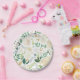 Weiche Elfenbeinflora-Muster mit Grün Weiß Pappteller