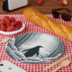 Weiche graue Pinguinarme im Art Déco Pappteller
