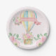 Diese herrliche Illustration der Ausrüstungsbeschreibungen des Heißluftballons des Aquarells verziert mit weichem rosa Blumen- und grünem Laub