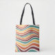 Wavy Streifen, Grunge Tote Tag. Retro. Abstrakte, farbenfrohe Textur im trendigen, groovy psychedelischen Stil. Vintag
