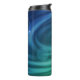 Thermal Tumbler abstrakte digitale Komposition mit verschiedenen Farben in den Schattierungen des Wassers, in einem glatten und eleganten Gefälle, die von intensiv, rein blau zu reinem Grün. Während sich die Farben vermischen, kommt ein rotierender Wirbelsturm heraus, wo die Konturen aus Farben, Highlights und Schatten bestehen. Der ganze Wirbel wird mit diskreten Funkelflecken vollendet, die über das ganze Bild verteilt sind, wie in einem sehr milden Bokeh-Effekt. Die ganze Idee erinnert an frisches, klares Wasser, das in der Sonne blau oder grün in den kalten Gletschern verfärbt ist.