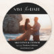 Ein modernes Save the Date in einem einzigartigen Untersetzer-Format, das für Ihr Lieblings-Verlobung-Foto entworfen wurde. "Save the Date" erscheint oben in Ihrem Foto in weißem Block und Schriftzeichen, mit Ihren Namen, Hochzeitstag und Hochzeitsort am unteren Rand. Benutzen Sie die zusätzliche Textzeile, um Ihre Hochzeitswebsite oder weitere Details zu teilen.