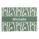 Ein wunderschönes Muster mit charmanten Eulen, die auf wiederholt auftretenden Birkenbäumen stehen. Die Farbtöne Grün, Salbei, Weiß und Braun erinnern an eine ruhige Waldlandschaft, die von Launen geprägt ist.