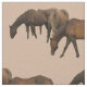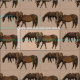 Dieses Tiergewebe-Ausrüstungsbeschreibungen eine abstrakte Interpretation des Weiden lassens der braunen Pferde in einem wiederholenden Muster-Set auf einem beige tan Hintergrund. Fertigen Sie leicht die Hintergrundfarbe zum Anzug Ihr spezielles Projekt besonders an.