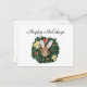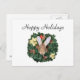 Fawn Flemish Riesenbasen sieht durch einen Weihnachtskranz und wünscht Hoppy Holidays Foto Weihnachts-Postkarte