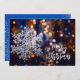 Die personalisierte Begrüßung auf der Vorder- und Rückseite ist ein schöner weißer Schneeflocken auf einem verschwommenen hellen Hintergrund. Wählen Sie High Definition für beste Druckqualität.