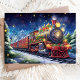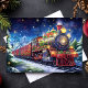 Feiern Sie mit dieser lebendigen Weihnachtskarte den Zauber der Saison und genießen Sie einen festlichen Urlaubzug mit farbenfrohen Lichtern und Dekorationen. Diese Karte ist perfekt für Bahnliebhaber oder alle, die eine Touch von Urlaubsnostalgie Lieben, bringt Wärme und Freude in die Saison.