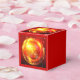 Grafik mit goldenem Weihnachtsball auf rotem Hintergrund