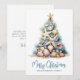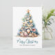 Verschenken Sie Weihnachtsstimmung mit dieser einzigartigen Weihnachtskarte mit einem Weihnachtsbaum aus Muscheln und Seesternen. Perfekt, um strandige Weihnachtsgrüße zu versenden, ist diese Karte ideal für jeden, der in tropischen Orten wie Florida, Hawaii oder den Bahamas lebt, oder für diejenigen, die einfach den Strand-Look lieben. Der mit einem Seestern gekrönte Baum ist eine charmante Mischung aus blauen und grünen Farbtönen, die an Unterwasserkorallen erinnern. Auf einem sandigen Untergrund platziert, hat diese Karte einen charmanten rustikalen Wasserfarben-Stil. Die Kombination aus einfachen Schriften und Schreibschrift-Typografie gibt ihr ein lässiges, aber dennoch elegantes Gefühl. Perfekt, um Ihren Weihnachtsgrüßen ein bisschen Surf und Sand hinzuzufügen. Elegante Türkisblaue Wasserfarben-Korallen-Seestern-Weihnachtsbaum-Muschel-
