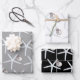 Starfish und Ziermuster Weihnachtsblatt-Blätter. Neutrale schwarze, weiße und graue Blätter haben ein Muster von weißen Sternen mit einem silberweißen Ornament. Ideal für Geschenke in einem warmen Klima.