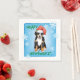 Feiern Sie die Urlaubssaison mit einem niedlichen Berner Hundewelpen mit einer Weihnachtsmannmütze inmitten einer Schneeflocke und mit den Worten, Happy Howlidays!