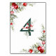 Diese Tischnummer aus Weihnachten ist mit 4 geschmückten Wildbeeren und Straußenblättern in den Weihnachtsfarben geschmückt und mit einem Rahmen aus Waldblättern und saftigen roten Beeren mit weißem Hintergrund dekoriert. Genießen Sie es.