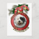 Feiern Sie die Weihnachtszeit mit diesem Deck die Hallen Design mit diesem tibetischen Terrier Hund! Hundportrait ist in einem Weihnachtsschmuck gerahmt, mit immergrünen Ästen und mehr Ornamenten geschmückt.