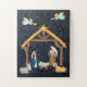 Eine schöne Krippe, darunter Maria, Joseph und Jesus, sowie Engel, Esel und Kuh.