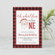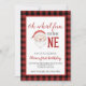 Oh, was Spaß, es ist eins zu sein! Weihnachten Weihnachten erste Geburtstagsfeier Einladung mit Aquarellsanta, Weihnachten und Büffel kariert zurück.