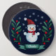 Personalisierte Weihnachtsnachtsblauer Knopf mit Aquarellschneemann, Schneeflocken und Winterfloralen. Es gibt auch einen Bereich, wo Sie alles schreiben können, was Sie gewollt haben - Name, Monogramm oder etwas Anderes, sehr einfach zu bearbeiten und Sie können aus vielen verschiedenen Schriftart wählen, wenn Sie möchten.