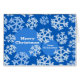 Frohe Weihnachtskarte für eine Patentante. Weihnachts-Grußkarte mit Schneeflocken in Blautönen und Text in weißer Schrift. Abstrakte Schneeflockenformen in kühlem und grafischem Design. Art, Bild und Vers Copyright © Shoaff Ballanger Studios.