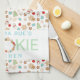 Dieses niedliche Weihnachtskeks gemusterte Küchentuch bietet festlich dekorierte Weihnachtskekse in den Formen von Schneeflocken, Schneemännern, Weihnachtsbäumen, Ziergegenständen und Sternen. Im Text steht "Oma's Cookie Kitchen" mit einem niedlichen Keksschrei als O's. Personalisieren Sie mit einem Namen für ein süßes Geschenk für den Keksbäcker in Ihrem Leben! Glücklich und hell, ist diese Schürze das perfekte Geschenk für Kinder Zucker-Kekse mit Oma dekoriert!