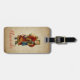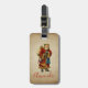 Ein Gepäckanhänger mit einem Vintagen Weihnachtsmann der Alten Welt. Klassische alte Welt santa, mit seinem berühmten roten Mantel und einer Tasche voller Spielzeuge. Dieser altmodische Weihnachtsmann ist schlank und hält einen Gehstock, um durch das Land zu reisen und allen Mädchen und Jungen Spielzeuge zu schenken. Alter Pergamentstil.