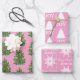 Weihnachten Girly Pink & White Muster Geschenkpapier Set
