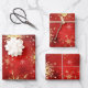Weihnachten Goldene Schneeflocken im roten Hinterg Geschenkpapier Set